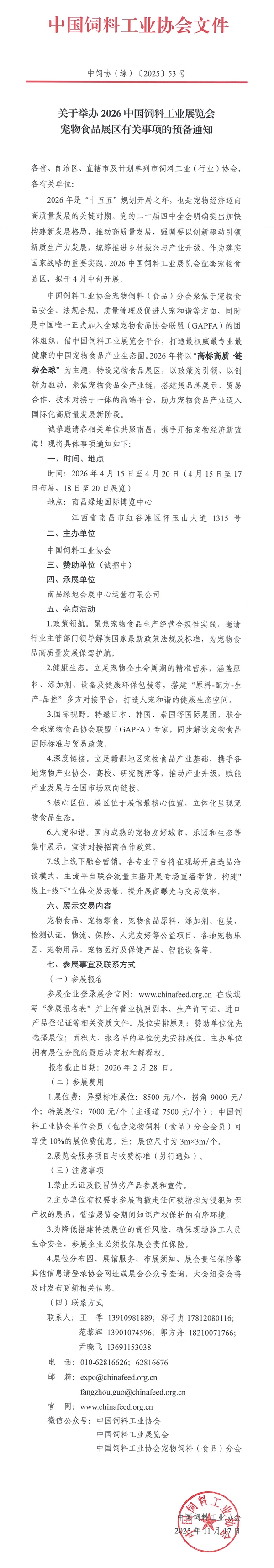 关于举办2026中国饲料工业展览会宠物食品展区有关事项的预备通知.pdf