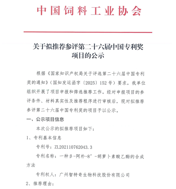 关于拟推荐参评第二十六届中国专利奖项目的公示