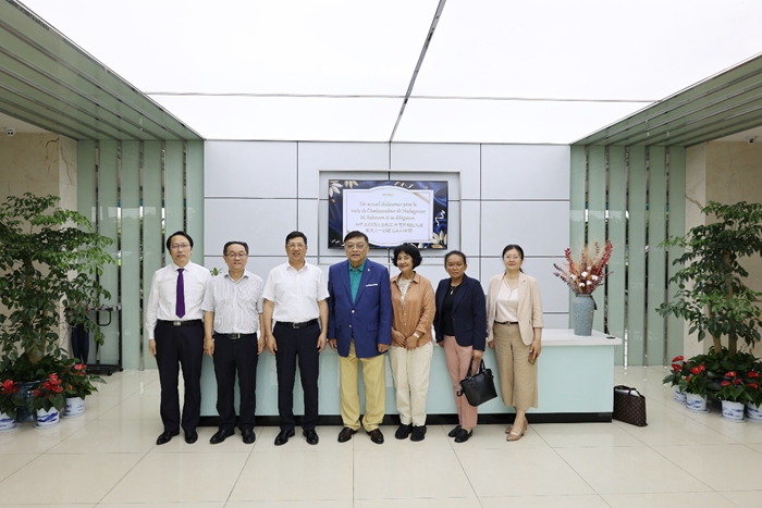 6月18日,马达加斯加共和国驻华大使罗班松·让·路易一行莅临丰尚公司参观指导。扬州市发改委党组成员、副主任张苏煜等领导陪同,丰尚公司董事长范天铭、董事刘广道全程热情接待。