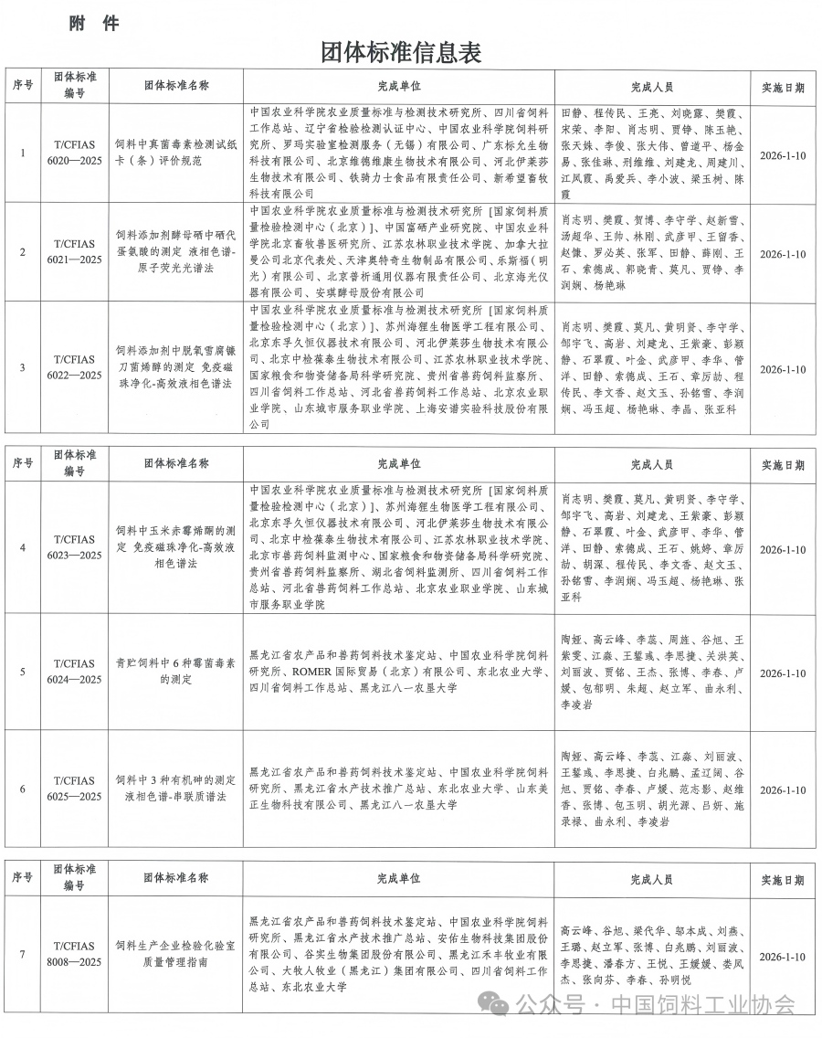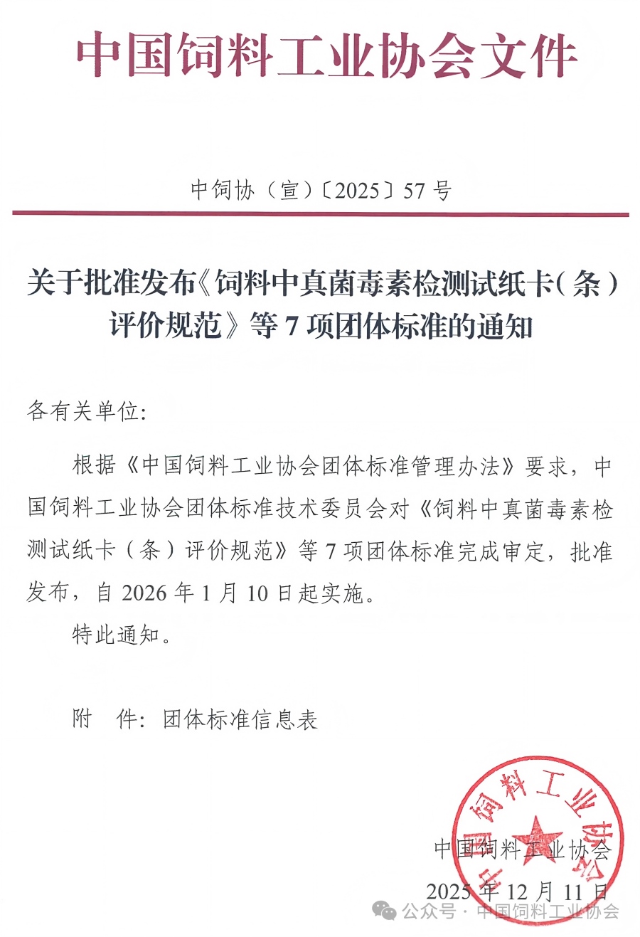 关于批准发布《饲料中真菌毒素检测试纸卡(条)评价规范》等7项团体标准的通知