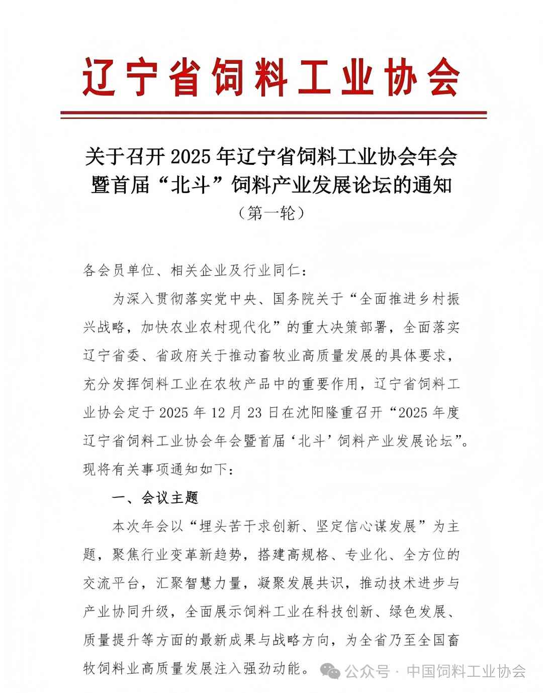关于召开2025年辽宁省饲料工业协会年会暨首届“北斗”饲料产业发展论坛的通知(第一轮)