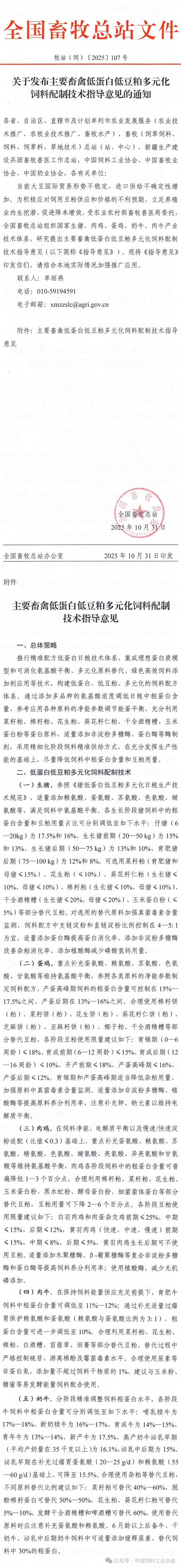 全国畜牧总站发布主要畜禽低蛋白低豆粕多元化饲料配制技术指导意见