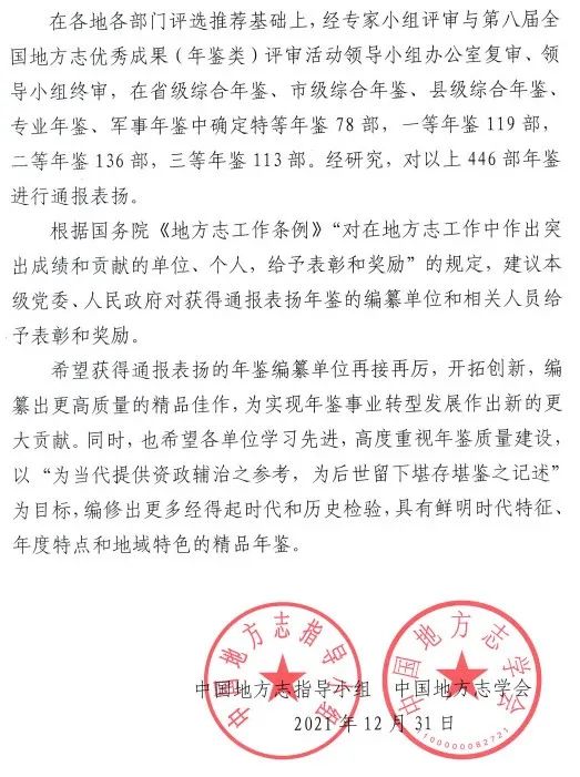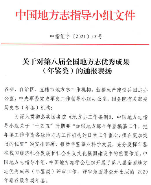 附件:关于对第八届全国地方志优秀成果(年鉴类)的通报表扬