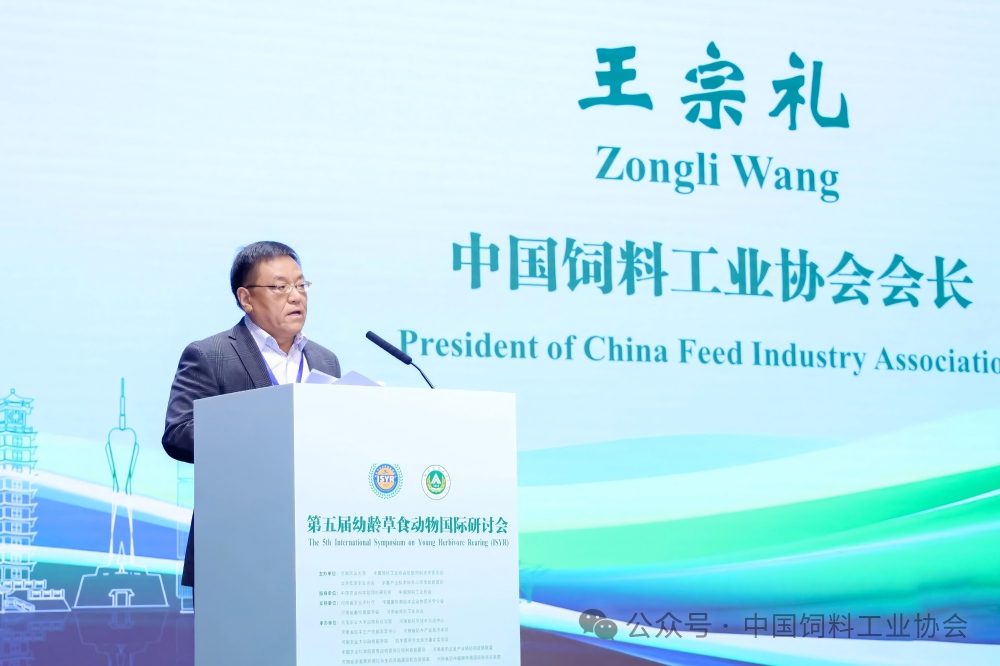 10月25日,中国饲料工业协会会长王宗礼在郑州出席第五届幼龄草食动物国际研讨会并发表讲话。